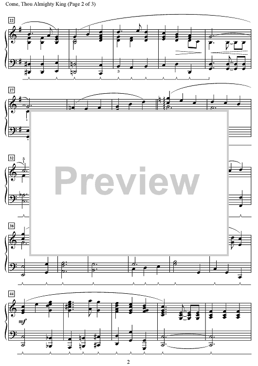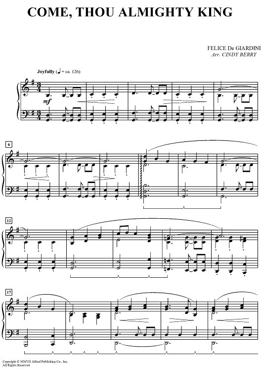 Digital Sheet Music for Come, Thou Almighty King by Cindy Berry, Felice de Giardini scored for Piano; id:497599