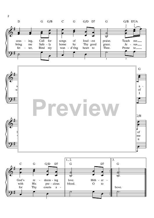 Digital Sheet Music for Come, Thou Fount of Every Blessing by Robert Robinson, John Wyeth scored for Easy Piano; id:381132