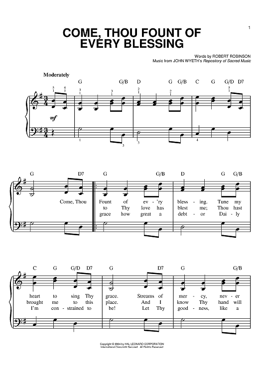 "Come, Thou Fount of Every Blessing" Sheet Music by Robert Robinson