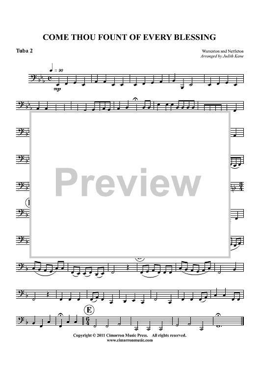 "Come Thou Fount of Every Blessing - Tuba 2" Sheet Music by Warrenton and Nettleton