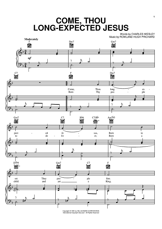 "Come, Thou Long-Expected Jesus" Sheet Music by Charles Wesley