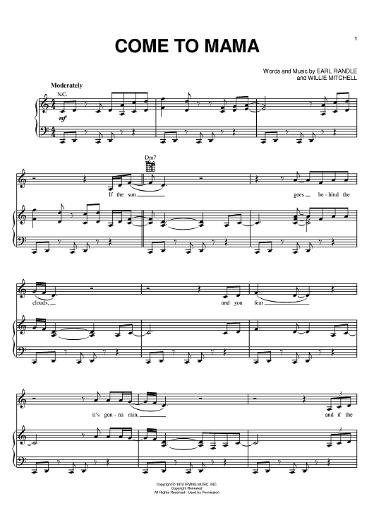 Digital Sheet Music for Come To Mama by Ann Peebles, Willie Mitchell, Etta James, Earl Randle scored for Piano/Vocal/Chords; id:402416