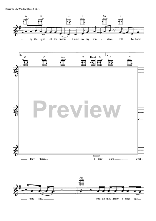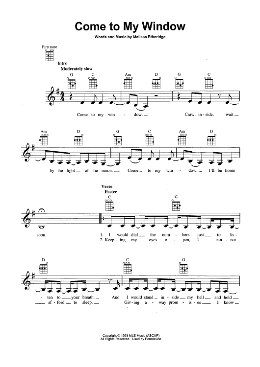 Digital Sheet Music for Come To My Window by Melissa Etheridge scored for Ukulele/Vocal; id:465497