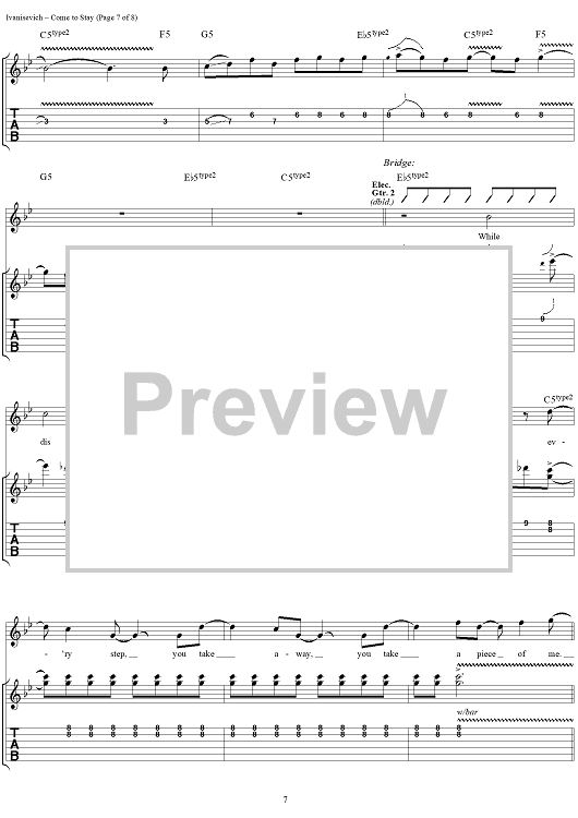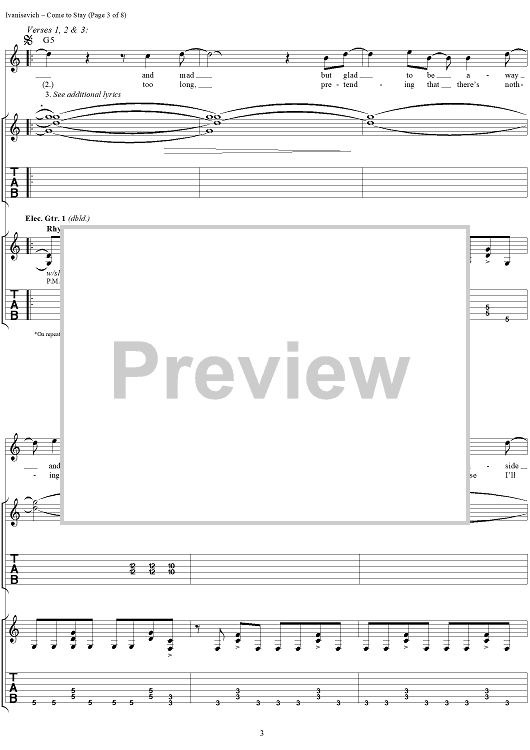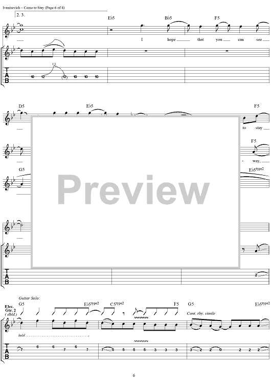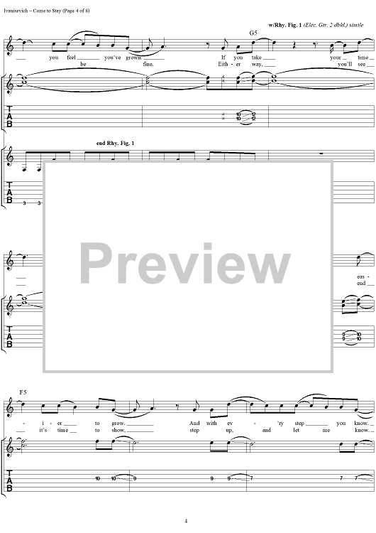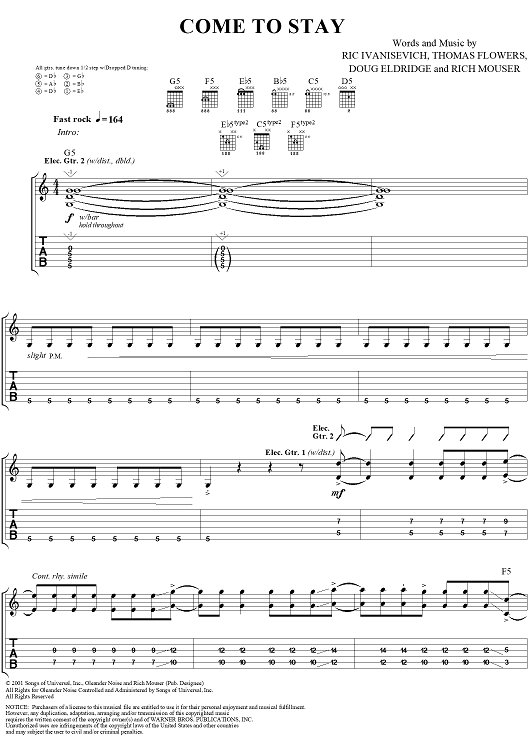 Digital Sheet Music for Come to Stay by Oleander, Ric Ivanisevich, Thomas Flowers, Doug Eldridge, Rich Mouser scored for Guitar Tab/Vocal; id:285298