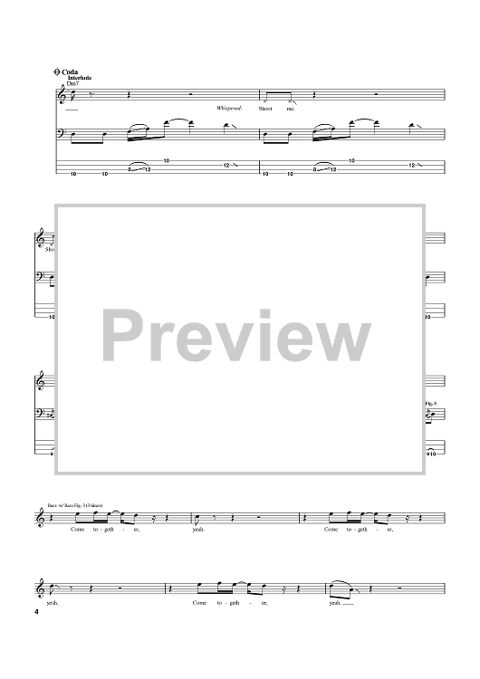 Digital Sheet Music for Come Together by Paul McCartney, The Beatles, Aerosmith, John Lennon scored for Bass Tab; id:369486