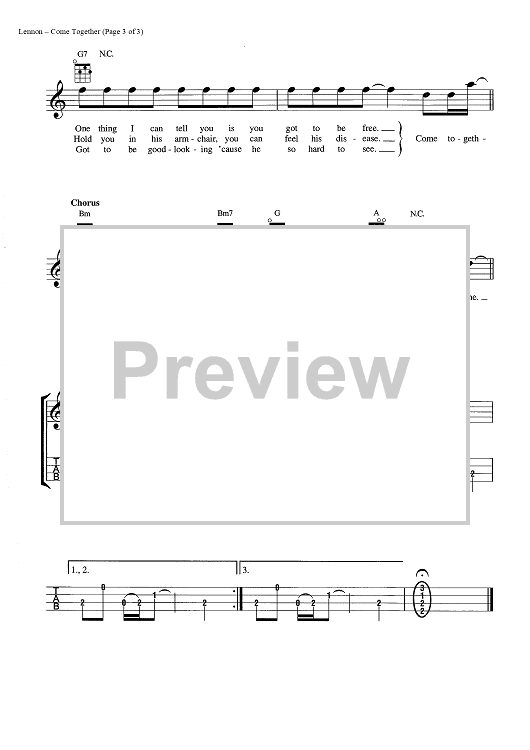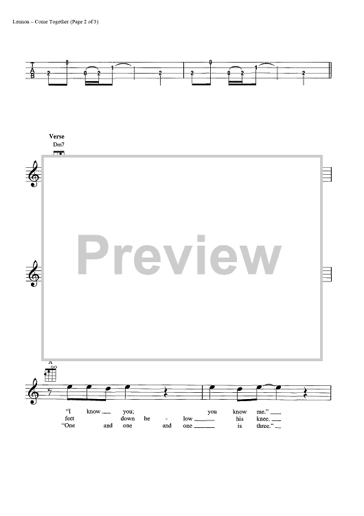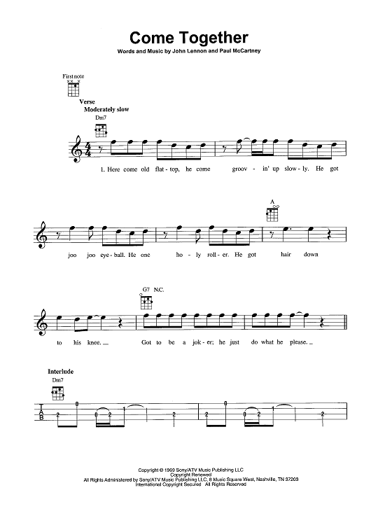 Digital Sheet Music for Come Together by Paul McCartney, The Beatles, John Lennon scored for Ukulele/Vocal; id:448973
