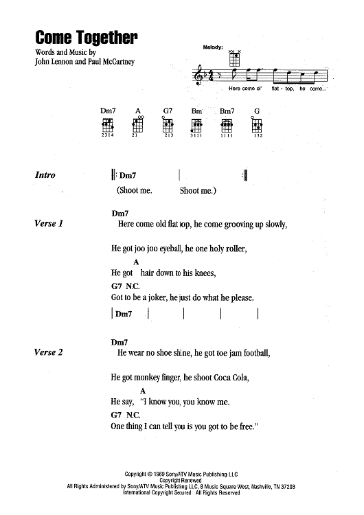 Digital Sheet Music for Come Together by Paul McCartney, The Beatles, John Lennon scored for Ukulele/Vocal; id:466338
