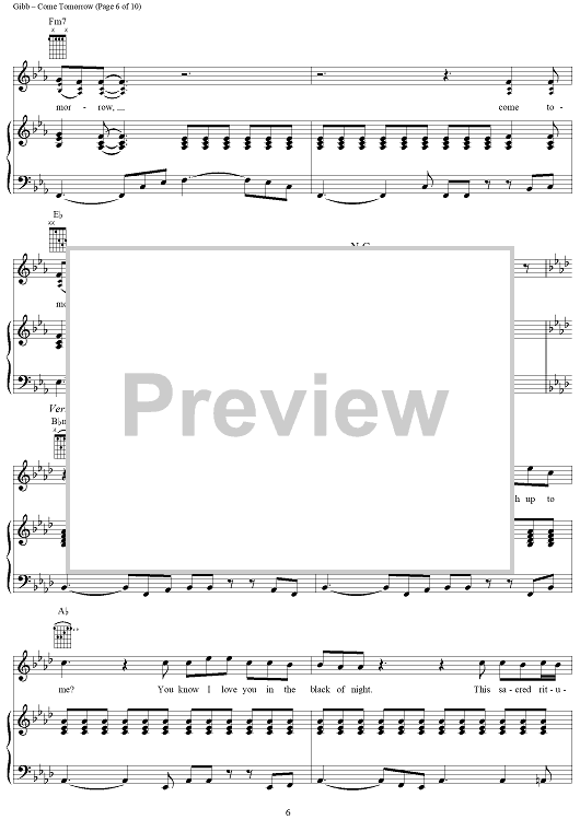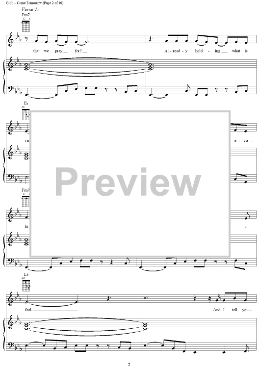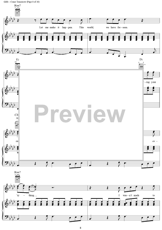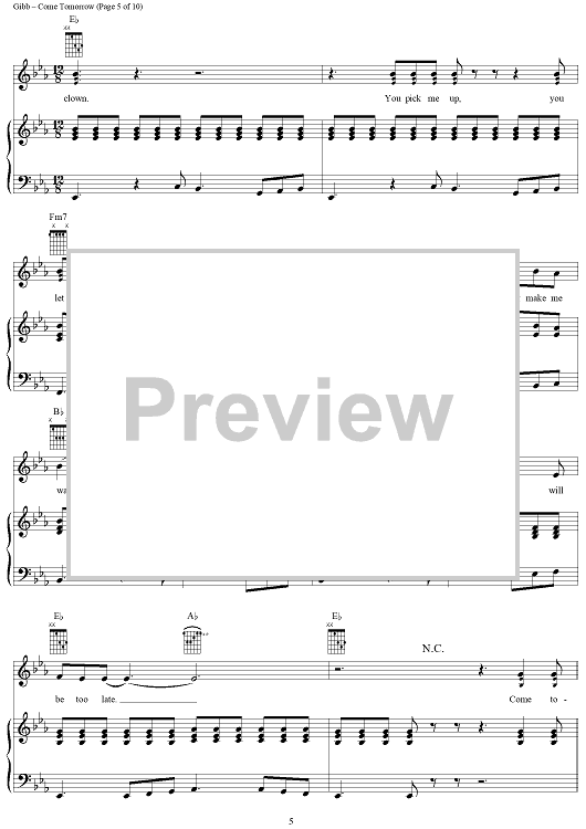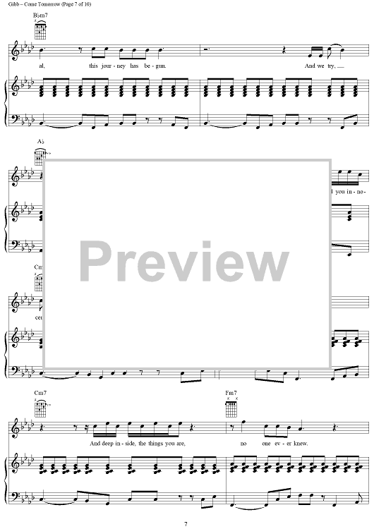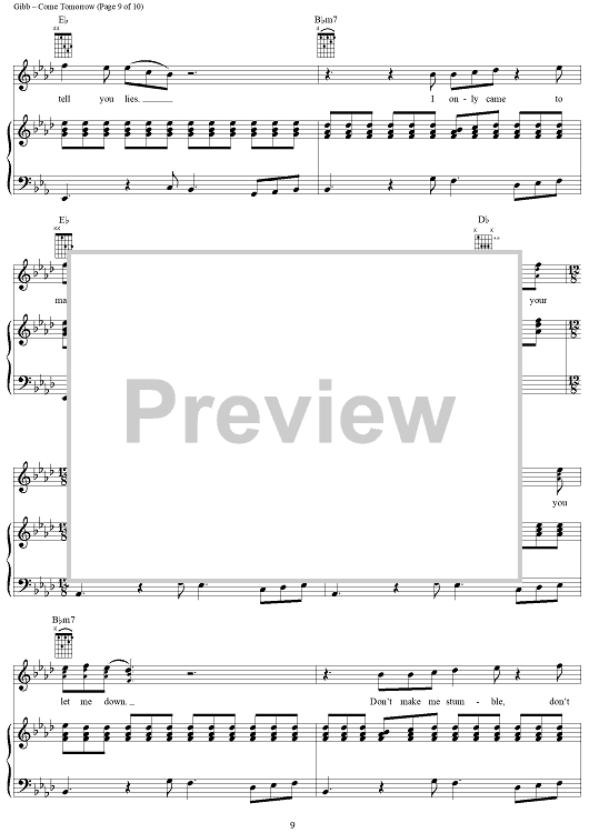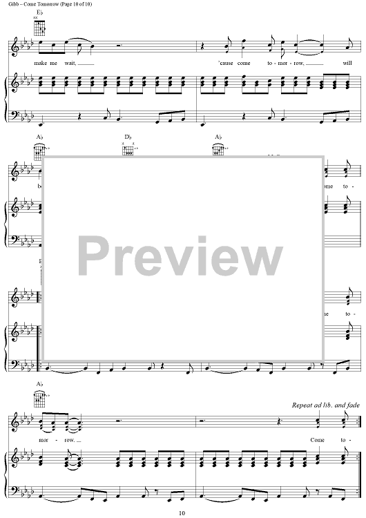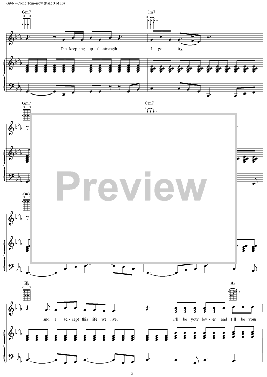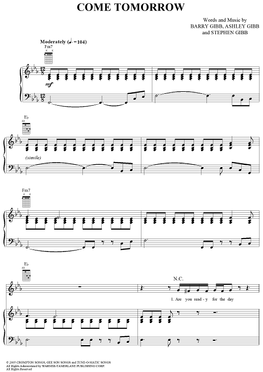 Digital Sheet Music for Come Tomorrow by Barry Gibb, Ashley Gibb, Barbra Streisand, Steve Gibb scored for Piano/Vocal/Chords; id:318191
