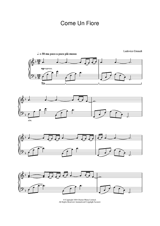 "Come Un Fiore" Sheet Music by Ludovico Einaudi