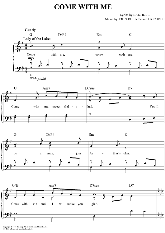 Digital Sheet Music for Come with Me by Eric Idle, John Du Prez scored for Easy Piano/Vocal/Chords; id:390110