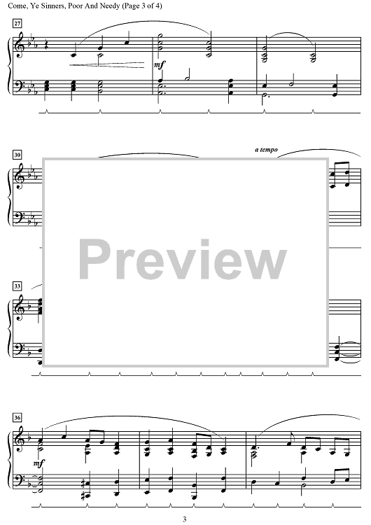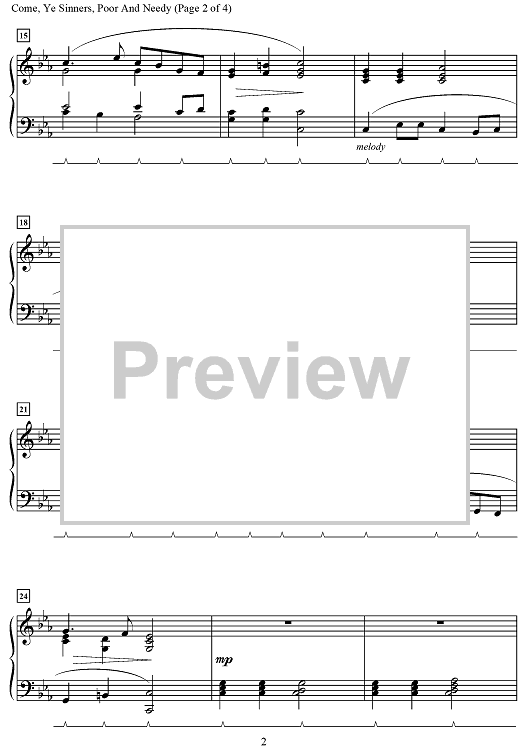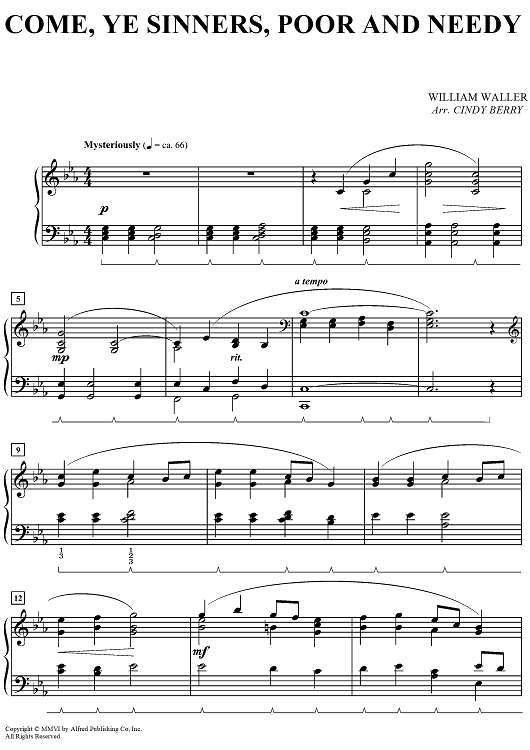 Digital Sheet Music for Come, Ye Sinners, Poor and Needy by Cindy Berry, William Waller scored for Piano; id:497588