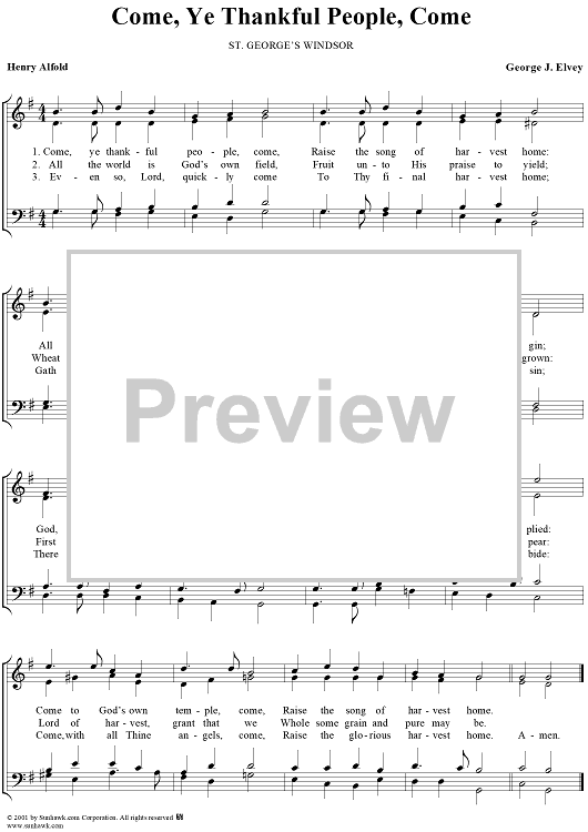 "Come, Ye Thankful People, Come" Sheet Music by George J. Elvey