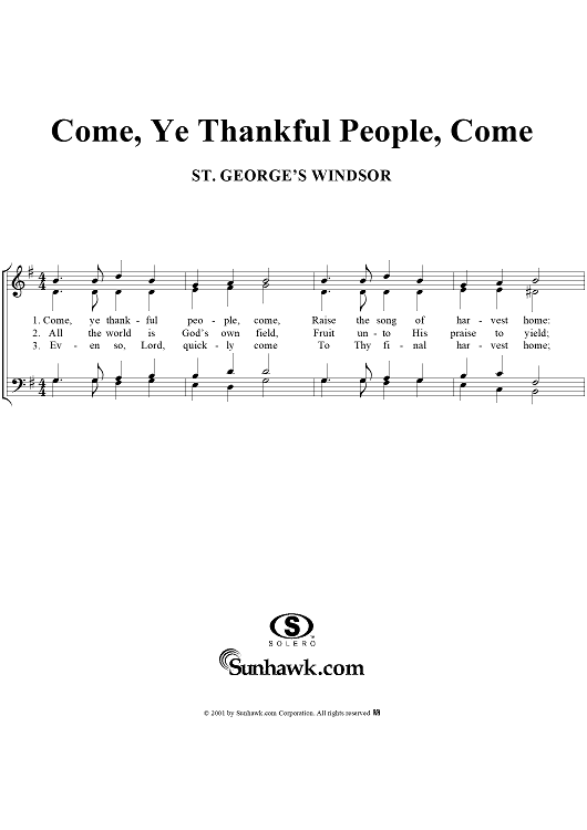 Digital Sheet Music for Come, Ye Thankful People, Come by George J. Elvey scored for Four-part Mixed Chorus; id:264115