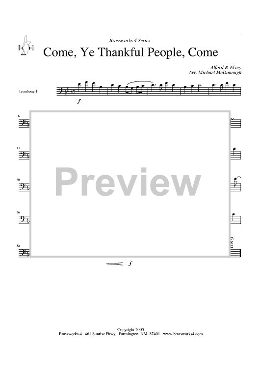 Digital Sheet Music for Come, Ye Thankful People, Come - Trombone 1 by George J. Elvey, Henry Alford, Michael McDonough scored for Trombone Quartet; id:318704