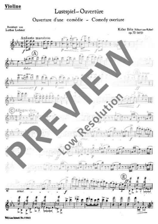 Digital Sheet Music for Comedy Overture by Béla Kéler scored for Violin And Piano; id:482241