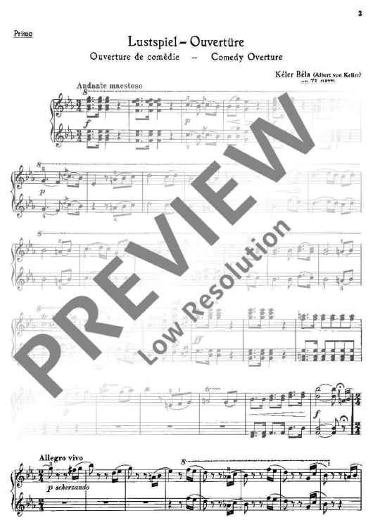 Digital Sheet Music for Comedy Overtury by Béla Kéler scored for Piano (4 Hands); id:482454