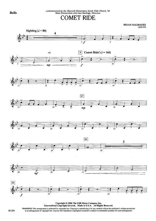 "Comet Ride - Bells" Sheet Music by Brian Balmages