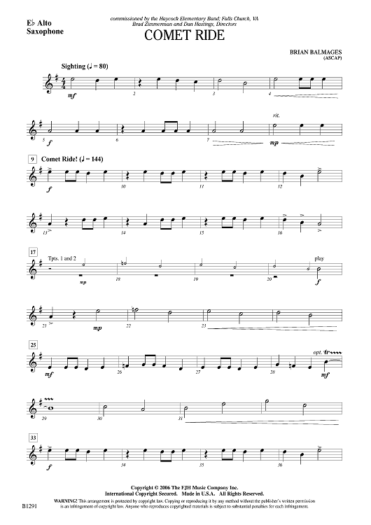 "Comet Ride - Eb Alto Sax" Sheet Music by Brian Balmages