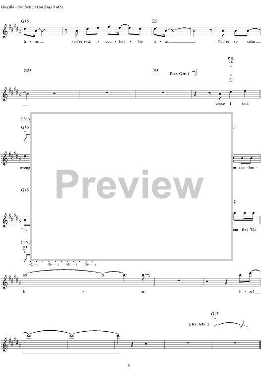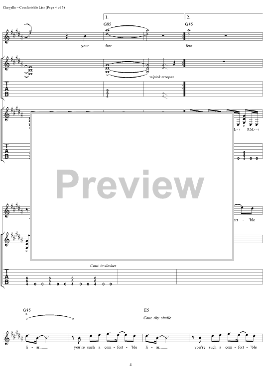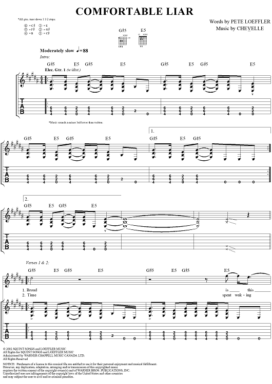 Digital Sheet Music for Comfortable Liar by Chevelle, Pete Loeffler scored for Guitar Tab/Vocal; id:297400