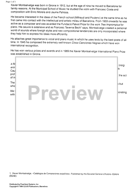 "Comiat - Preface" Sheet Music by Xavie Montsalvatge