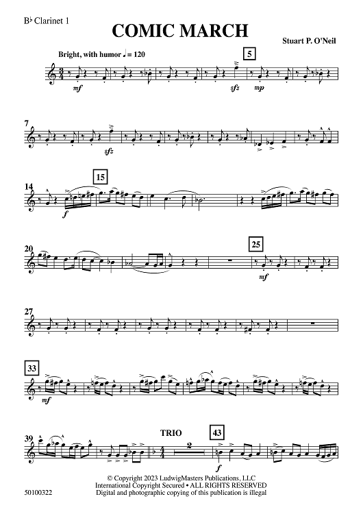 Digital Sheet Music for Comic March - Bb Clarinet 1 by Stuart O'Neil scored for Concert Band; id:509842