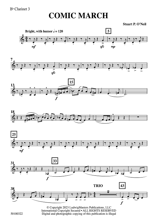 "Comic March - Bb Clarinet 3" Sheet Music by Stuart O'Neil