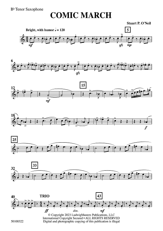 "Comic March - Bb Tenor Saxophone" Sheet Music by Stuart O'Neil