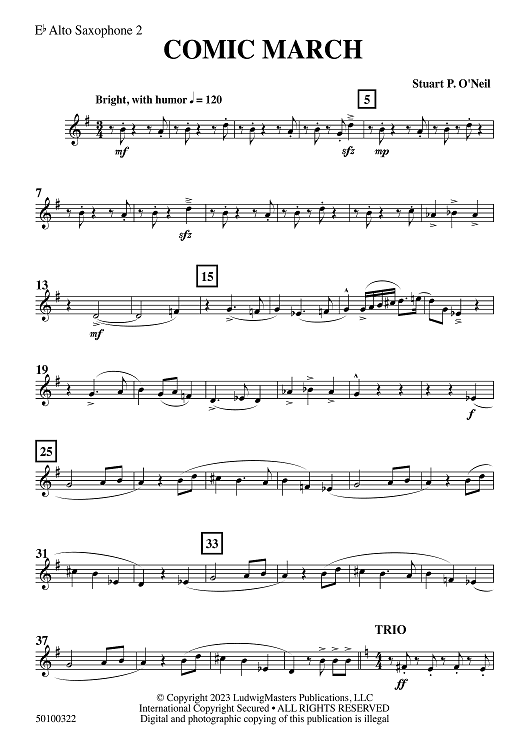 Digital Sheet Music for Comic March - Eb Alto Saxophone 2 by Stuart O'Neil scored for Concert Band; id:509847