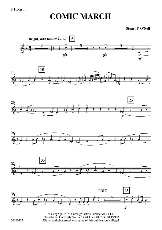 Digital Sheet Music for Comic March - F Horn 1 by Stuart O'Neil scored for Concert Band; id:509853