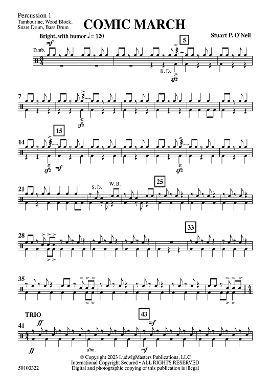 "Comic March - Percussion 1" Sheet Music by Stuart O'Neil