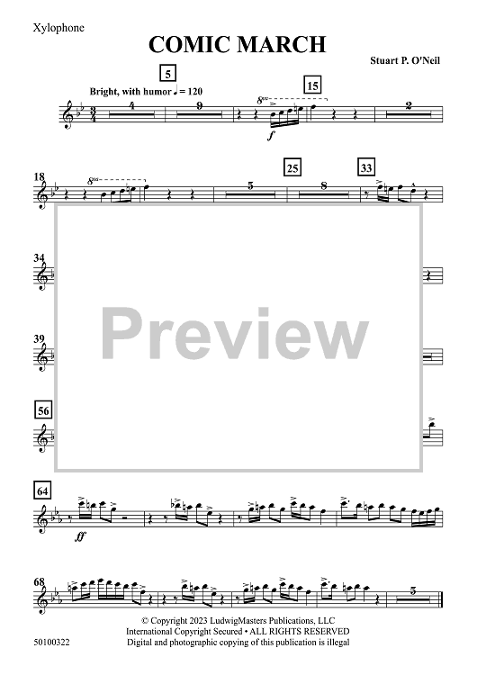Digital Sheet Music for Comic March - Xylophone by Stuart O'Neil scored for Concert Band; id:509860