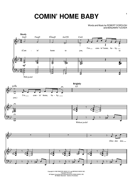Digital Sheet Music for Comin' Home Baby by Robert Dorough, Michael Buble, Benjamin Tucker scored for Piano/Vocal/Chords; id:398435