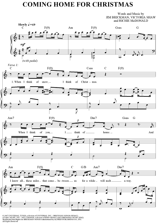 "Coming Home For Christmas" Sheet Music by Jim Brickman