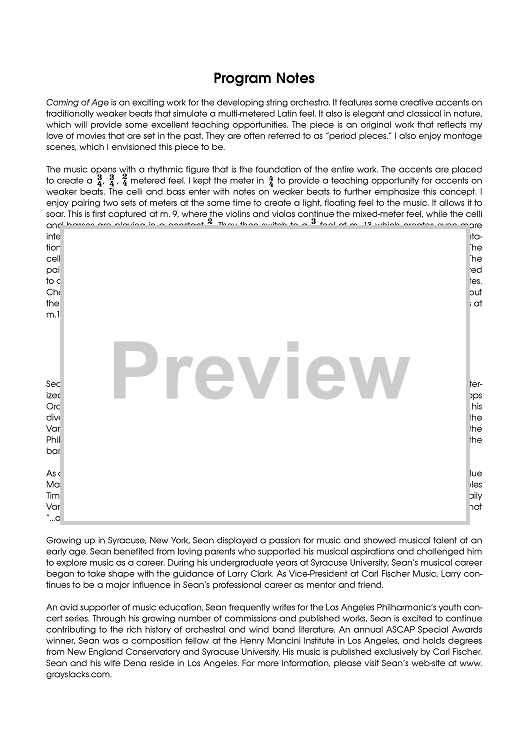 Digital Sheet Music for Coming of Age - Score by Sean O'Loughlin scored for Orchestra; id:408463