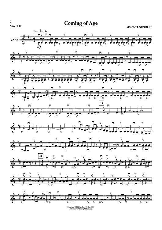 "Coming of Age - Violin 2" Sheet Music by Sean O'Loughlin