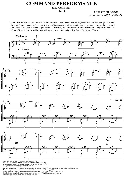 Digital Sheet Music for Command Performance (from Arabeske, Op. 18) by John W. Schaum, Robert Schumann scored for Piano Solo; id:296174