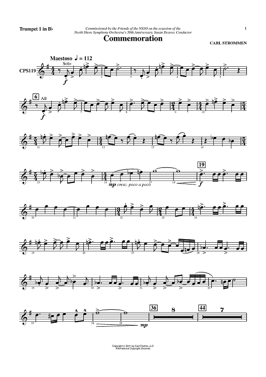 "Commemoration - Trumpet 1 in Bb" Sheet Music by Carl Strommen