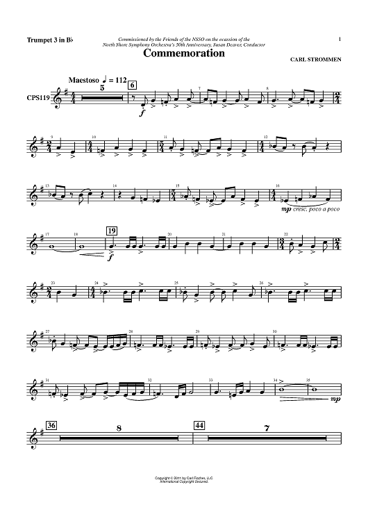 "Commemoration - Trumpet 3 in Bb" Sheet Music by Carl Strommen
