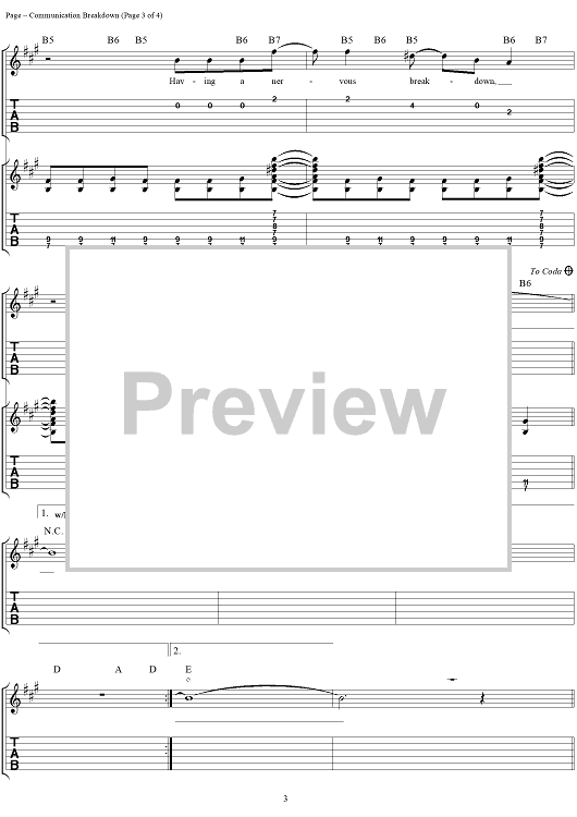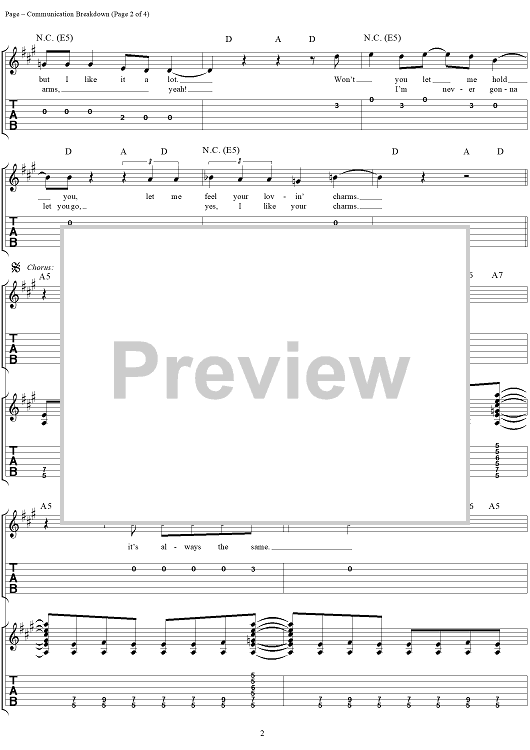 Digital Sheet Music for Communication Breakdown by Jimmy Page, John Paul Jones, Louis Martinez, John Bonham, Led Zeppelin scored for Easy Guitar Tab/Vocal; id:253926