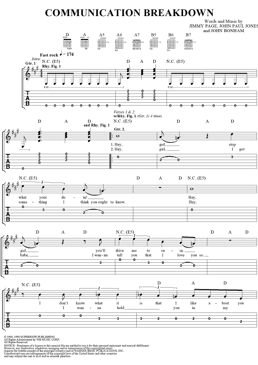 "Communication Breakdown" Sheet Music by Led Zeppelin