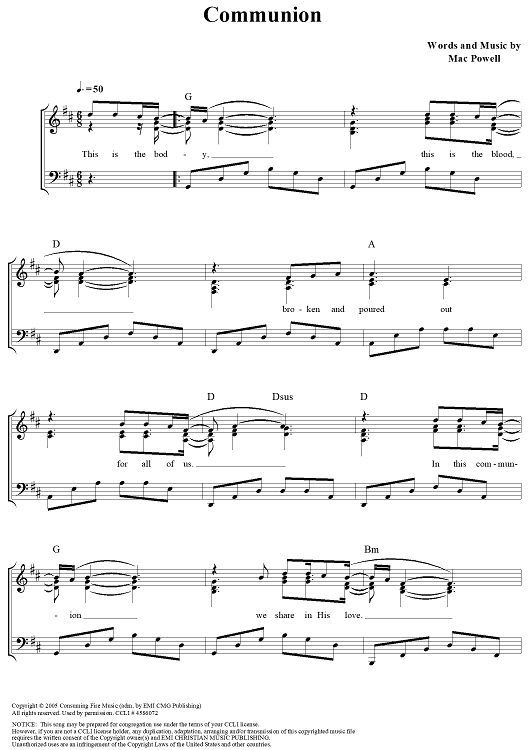 Digital Sheet Music for Communion by Third Day, Mac Powell scored for Piano/Vocal/Chords; id:320945