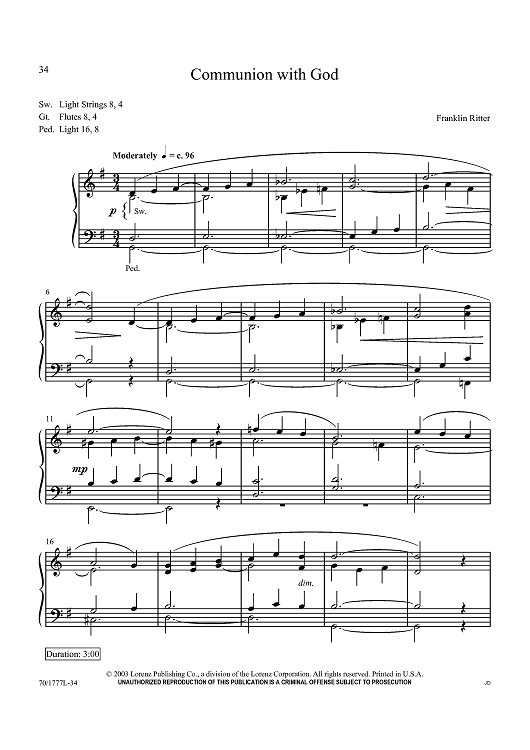Digital Sheet Music for Communion with God by Franklin Ritter scored for Organ Solo; id:437683