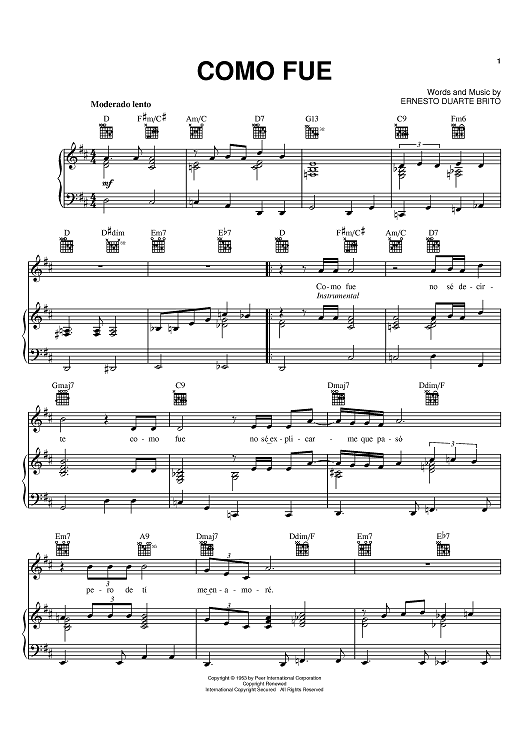 "Como Fue" Sheet Music by Ernesto Duarte Brito