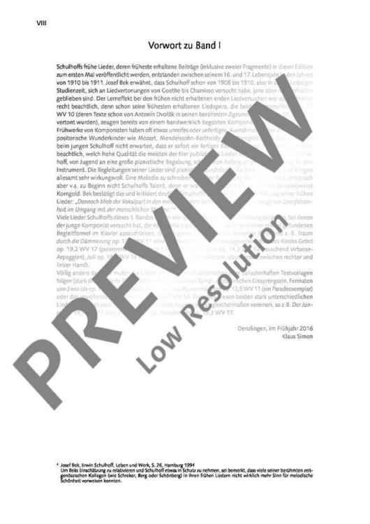 All songs and lieder composed in the years 1910-1937 by the composer Erwin Schulhoff from Prague, who was persecuted by the National Socialists, are now published in three volumes for the first time, documenting his very different creative phases and stages of life: Whereas Vol. I and II stand for the emancipation from being a successor to Wagner and Debussy, Vol. III contains not only the well-known atonal Fünf Gesänge from 1919 but also fresh jazzy popular songs and political songs for the masses written after 1933 when he turned to communism.