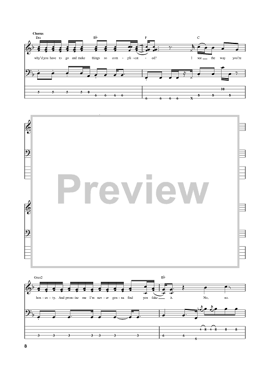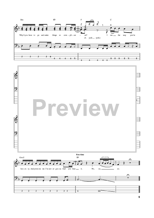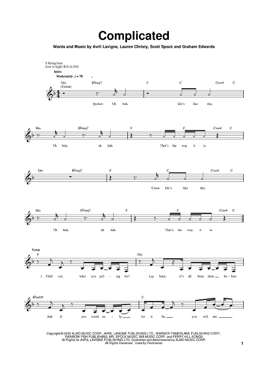 Digital Sheet Music for Complicated by Lauren Christy, Avril Lavigne, Scott Spock scored for Bass Tab; id:374361