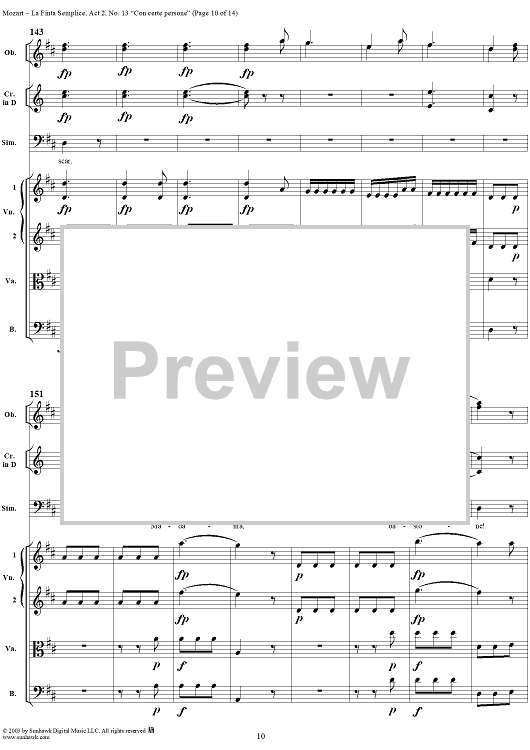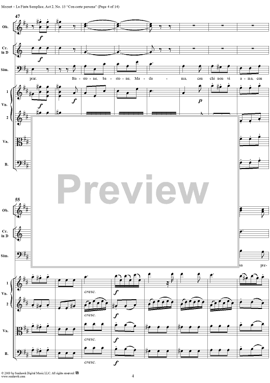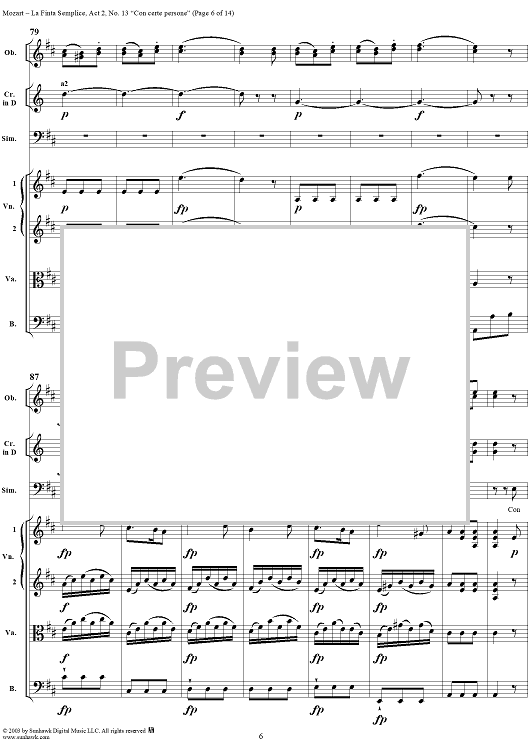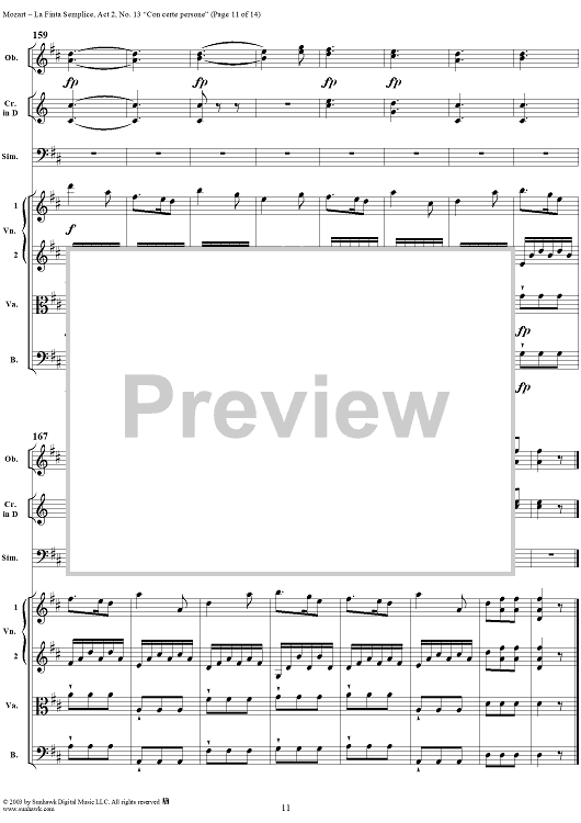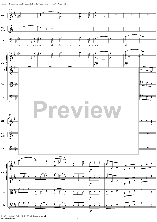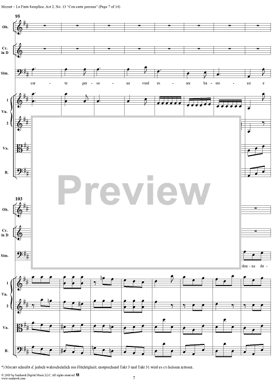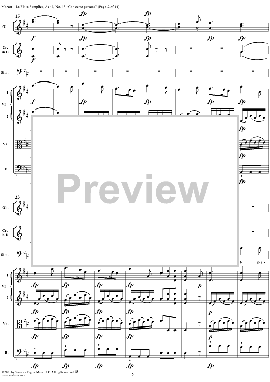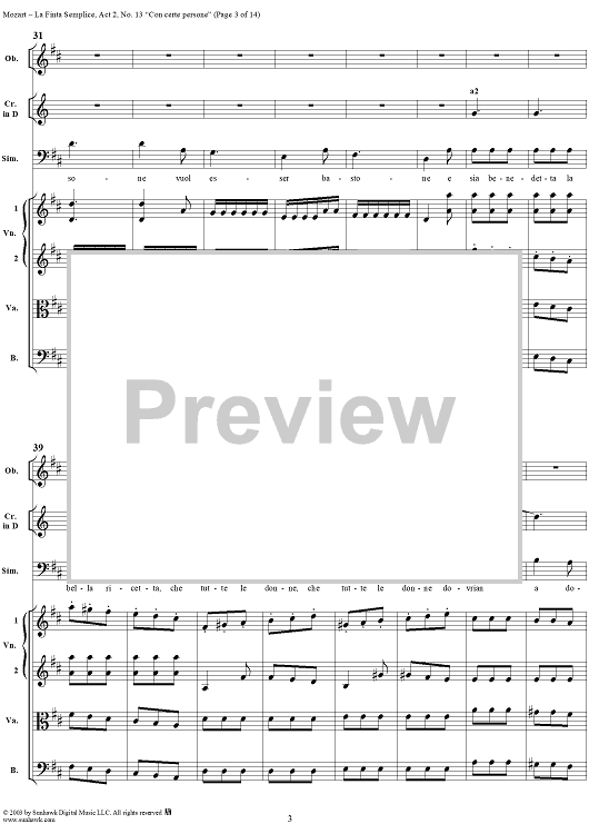 Digital Sheet Music for "Con certe persone", No. 13 from "La Finta Semplice", Act 2, K46a (K51) - Full Score by Wolfgang Amadeus Mozart scored for Voice and Orchestra; id:291813