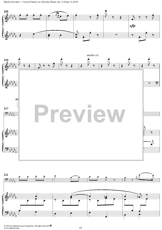 Digital Sheet Music for Concert Fantasy, Op. 33 - Piano Score by Nikolai Rimsky-Korsakov scored for Bassoon/Piano; id:235854