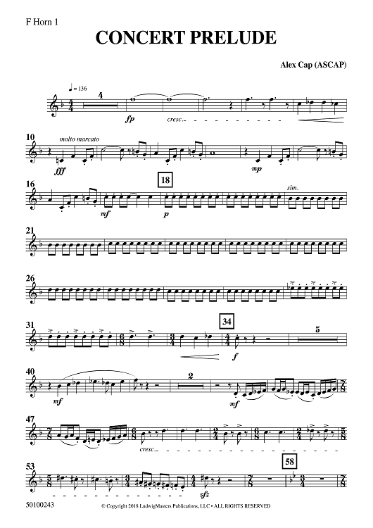 Digital Sheet Music for Concert Prelude - F Horn 1 by Alex Cap scored for Symphonic Band; id:508898