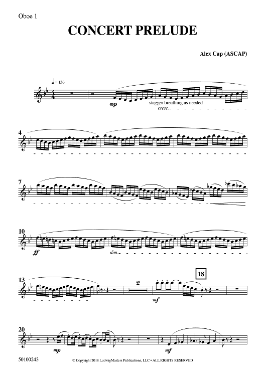 Digital Sheet Music for Concert Prelude - Oboe 1 by Alex Cap scored for Symphonic Band; id:508883