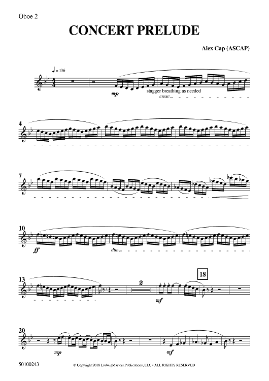 Digital Sheet Music for Concert Prelude - Oboe 2 by Alex Cap scored for Symphonic Band; id:508884